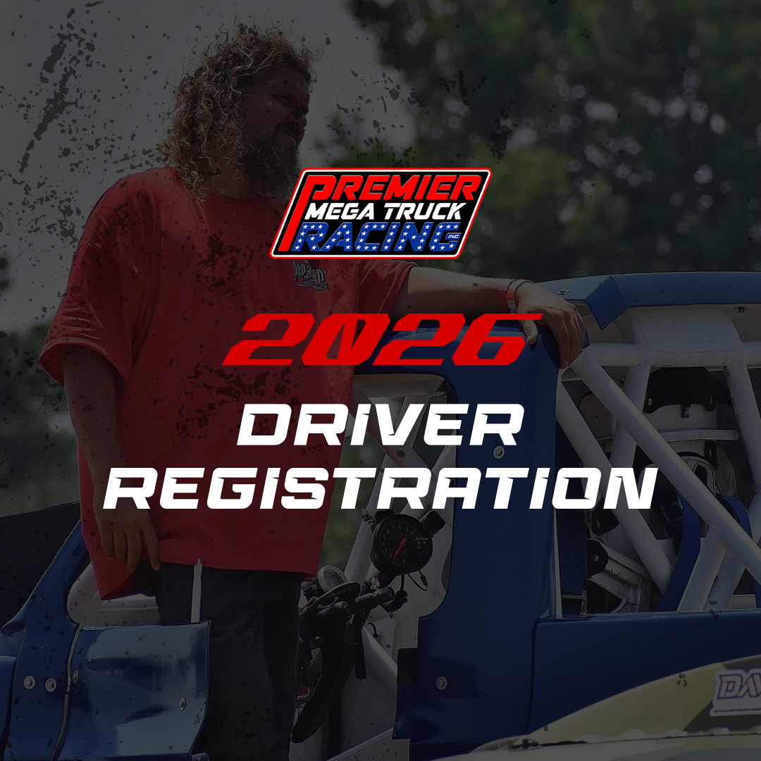 Secure your spot to race in the 2026 Premier Mega Truck Racing season. While membership is not required to compete, you must be a yearly member to get reduced entry fees, free event grounds entry, earn season points, and gain additional rewards and payouts from our sponsors.
